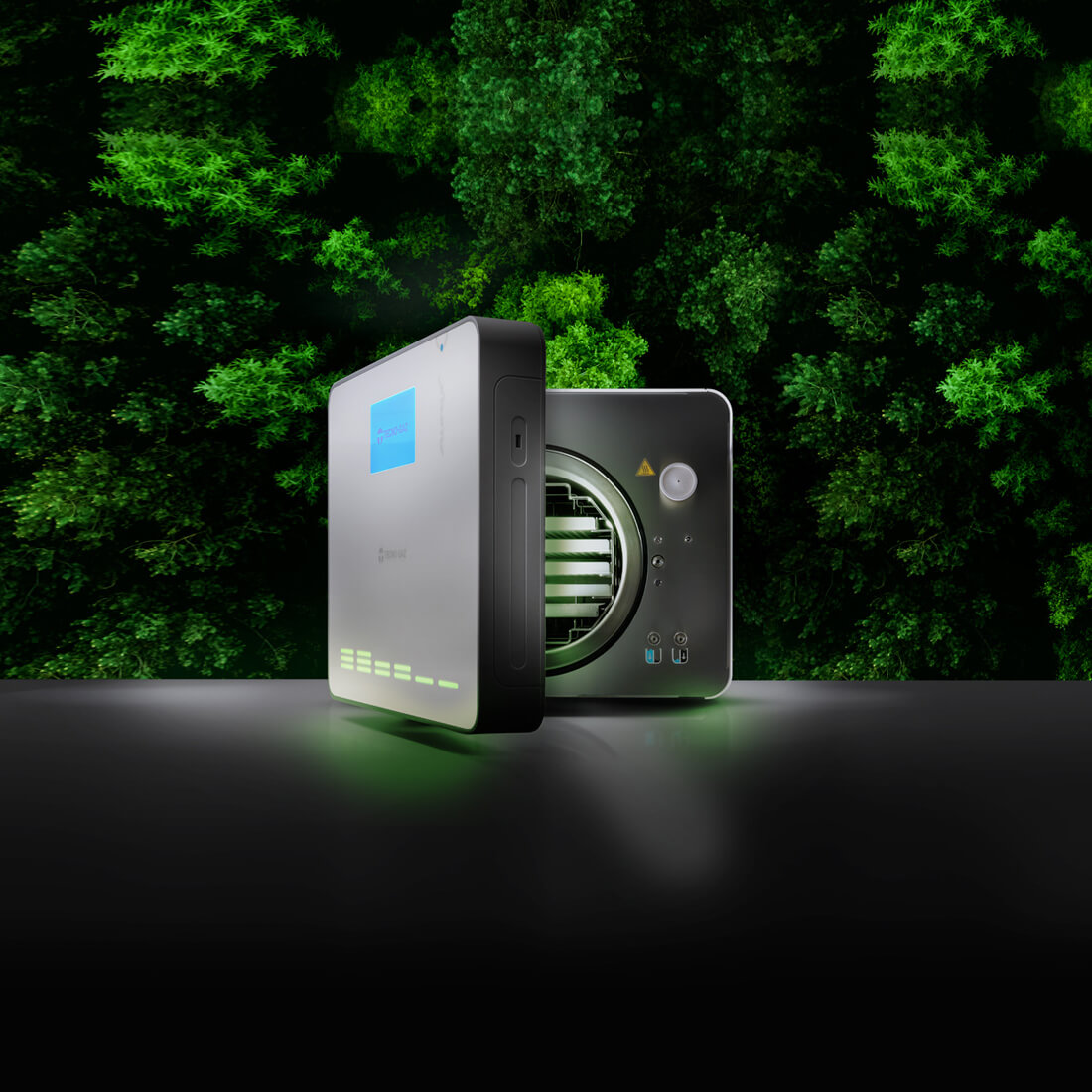 Mimo dużej komory, obudowa ma kompaktowe wymiary: 52 × 46 × 56 cm. Dzięki temu Aura X idealnie sprawdza się nawet w niewielkich gabinetach. Co więcej, boczna wentylacja umożliwia montaż w zabudowie lub we wnęce meblowej.